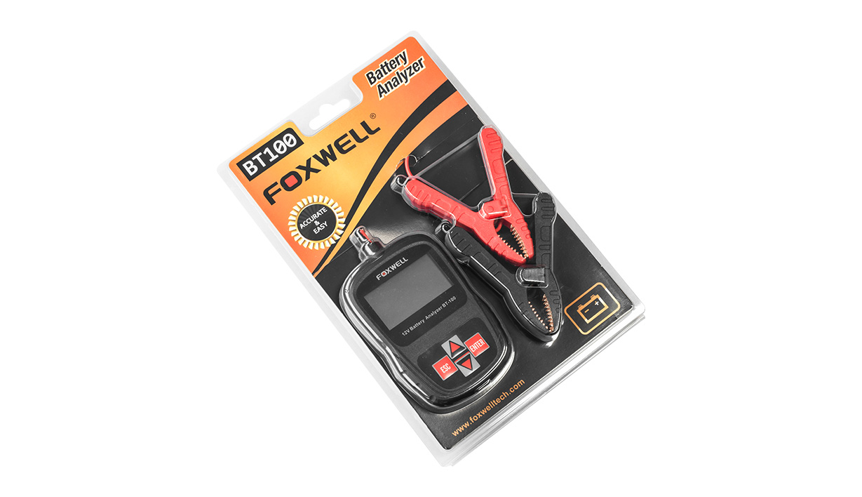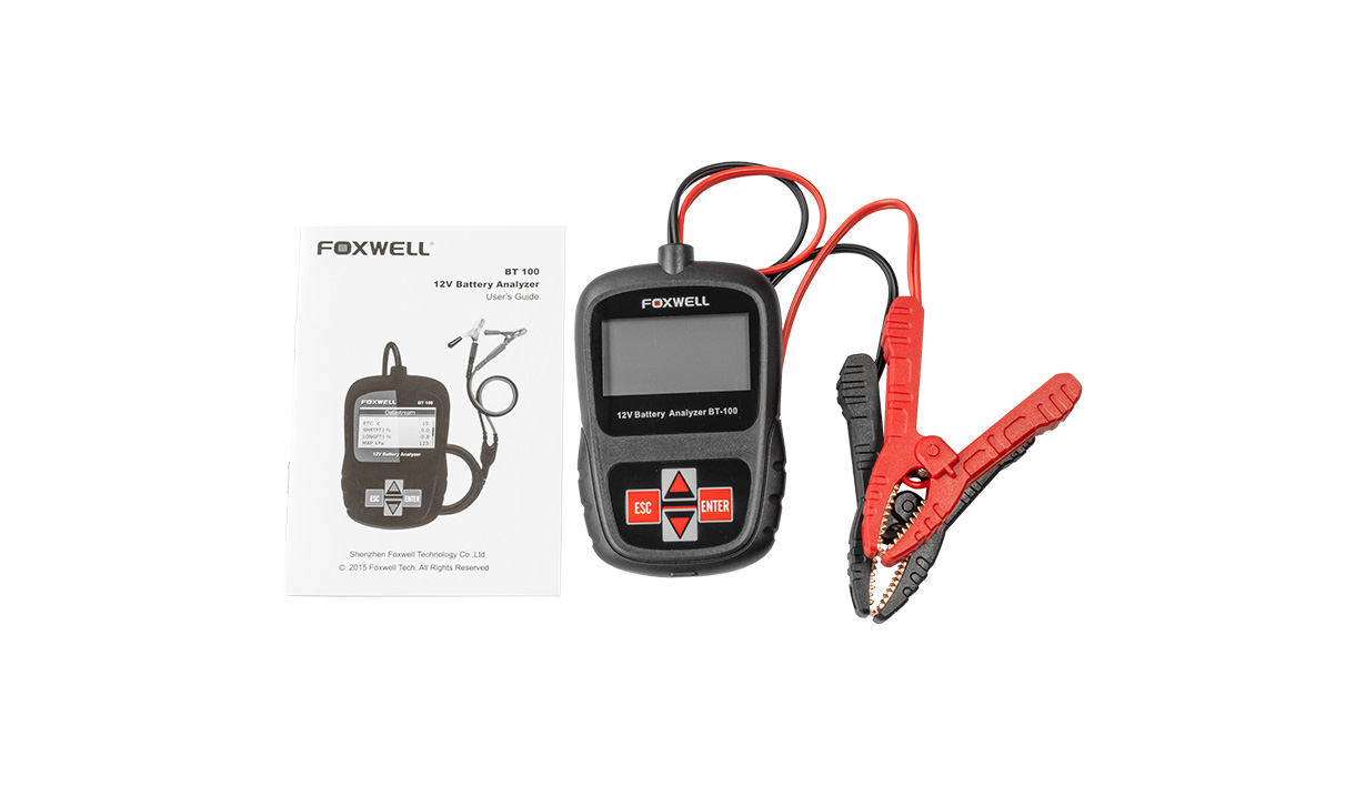 The latest BT100 12 Volt Battery Analyzer from Foxwell is dedicatedly developed to test 12V regular flooded, AGM flat plate, AGM spiral and gel batteries. It provides a quick, easy and affordable solution for technicians to view battery charging status, check battery health and detect faults. UPC:712321437495