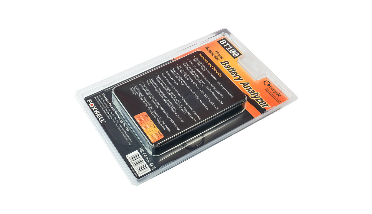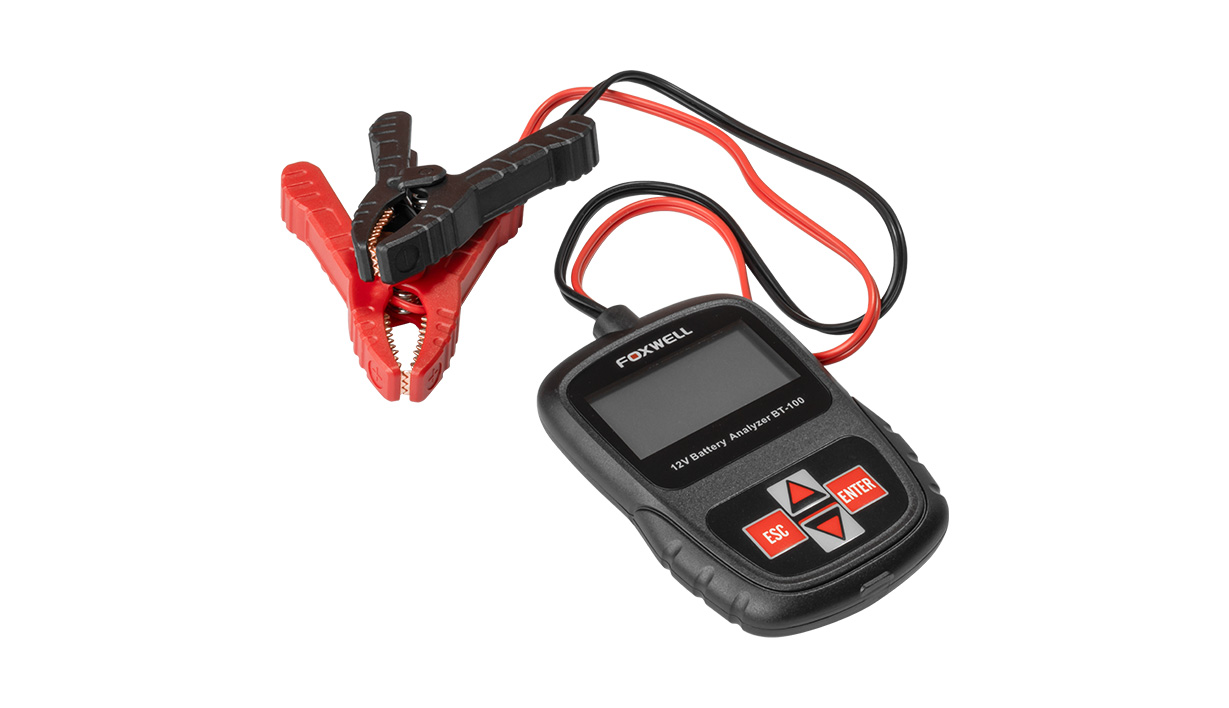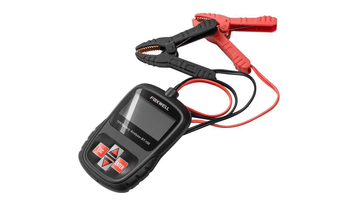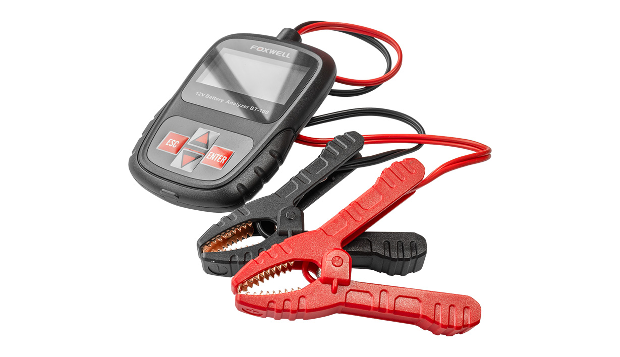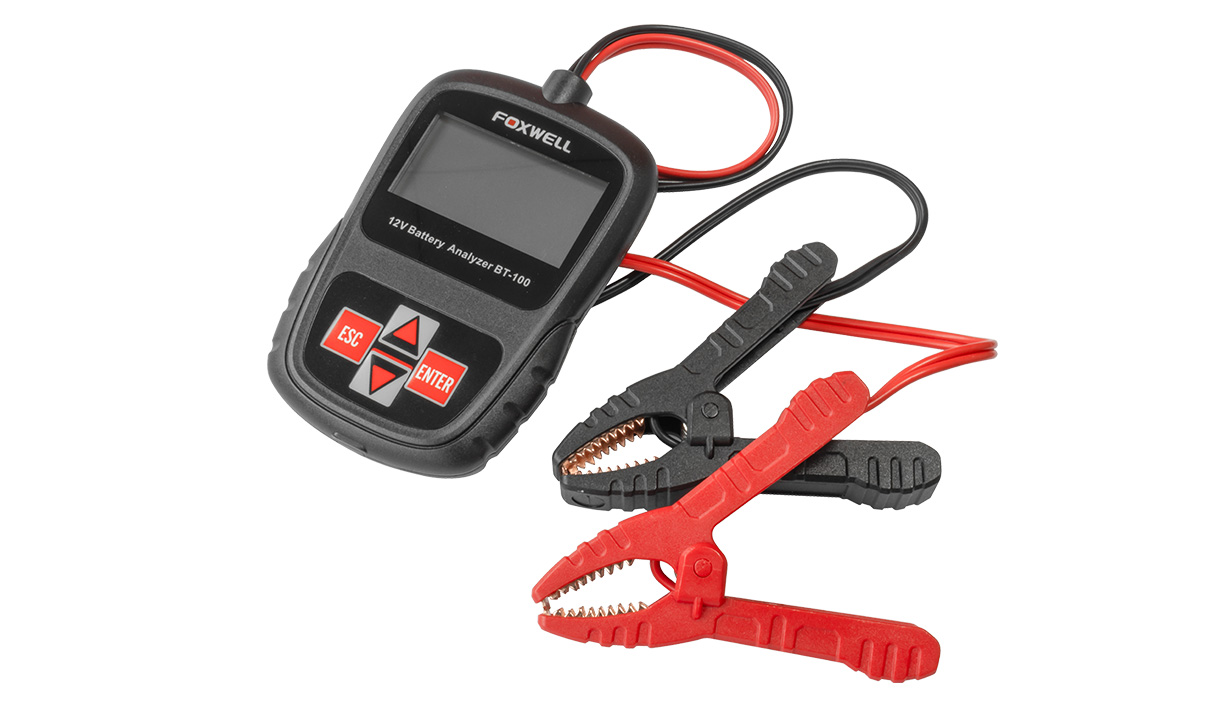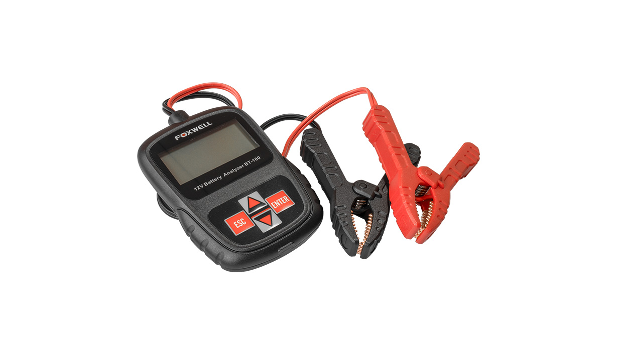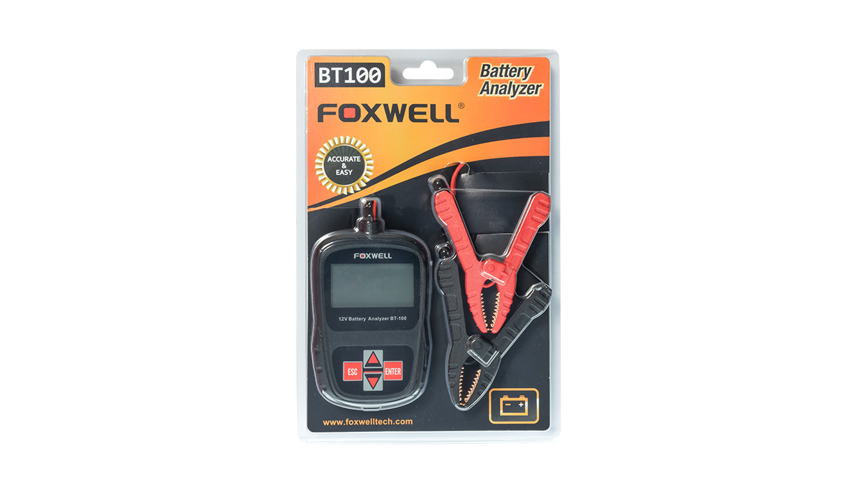 The latest BT100 12 Volt Battery Analyzer from Foxwell is dedicatedly developed to test 12V regular flooded, AGM flat plate, AGM spiral and gel batteries. It provides a quick, easy and affordable solution for technicians to view battery charging status, check battery health and detect faults. UPC:712321437495