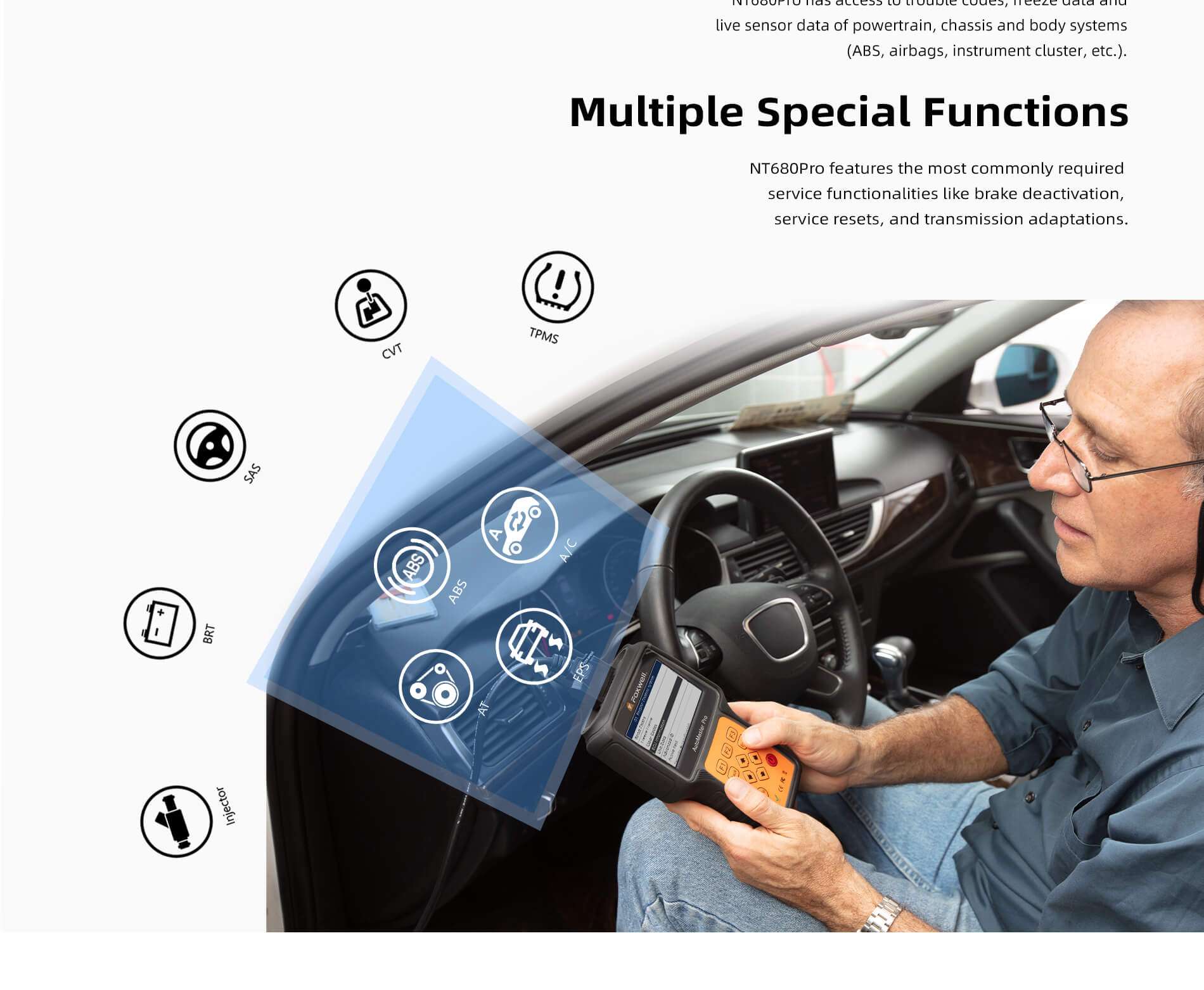 Delicately developed by the most distinguished experts of the industry, NT680Pro provides workshops, technicians and enthusiasts alike affordable diagnostic solutions. Through hardware and software upgrades, technical staff can now approach problems with greater speed and accuracy.