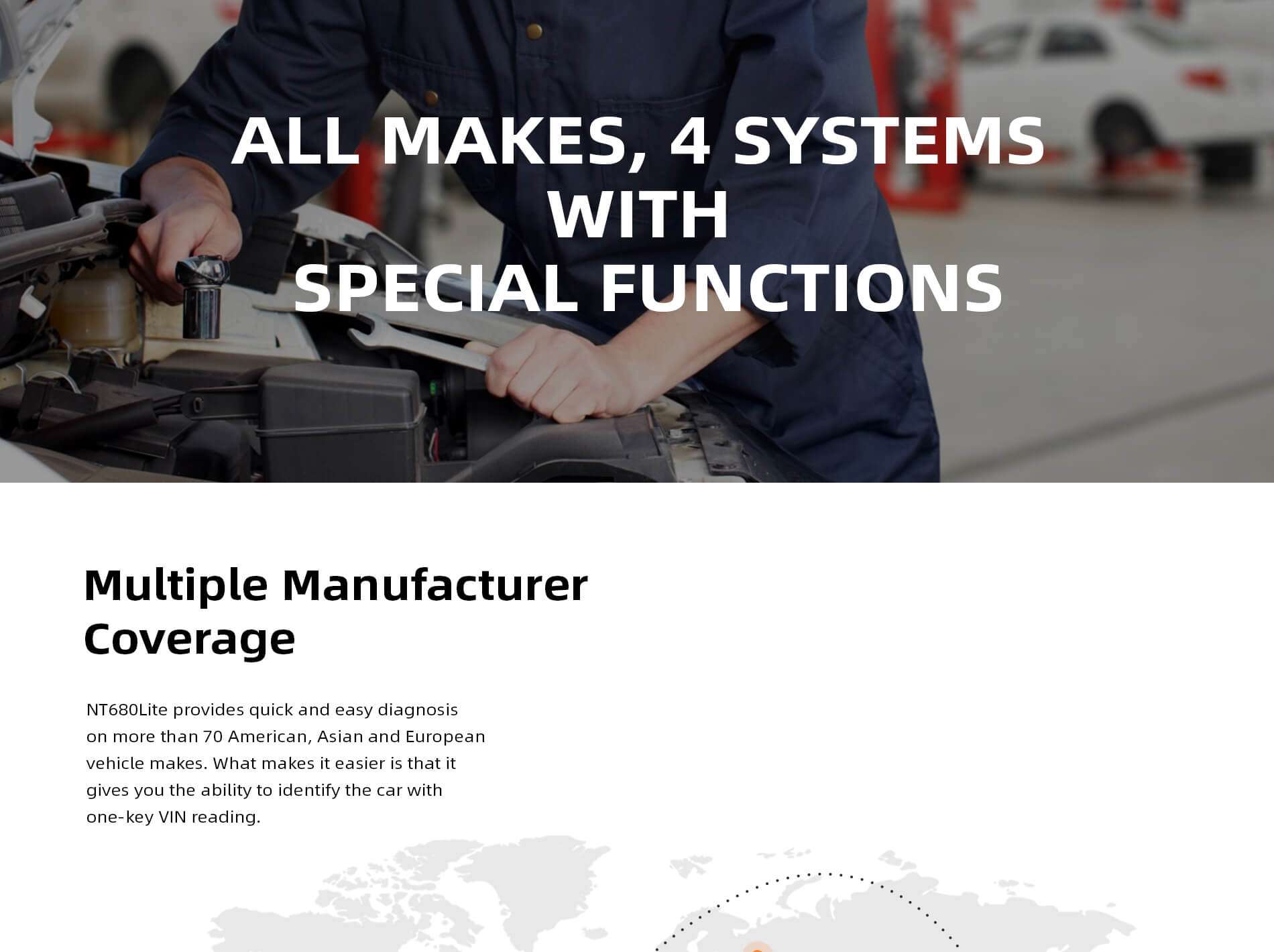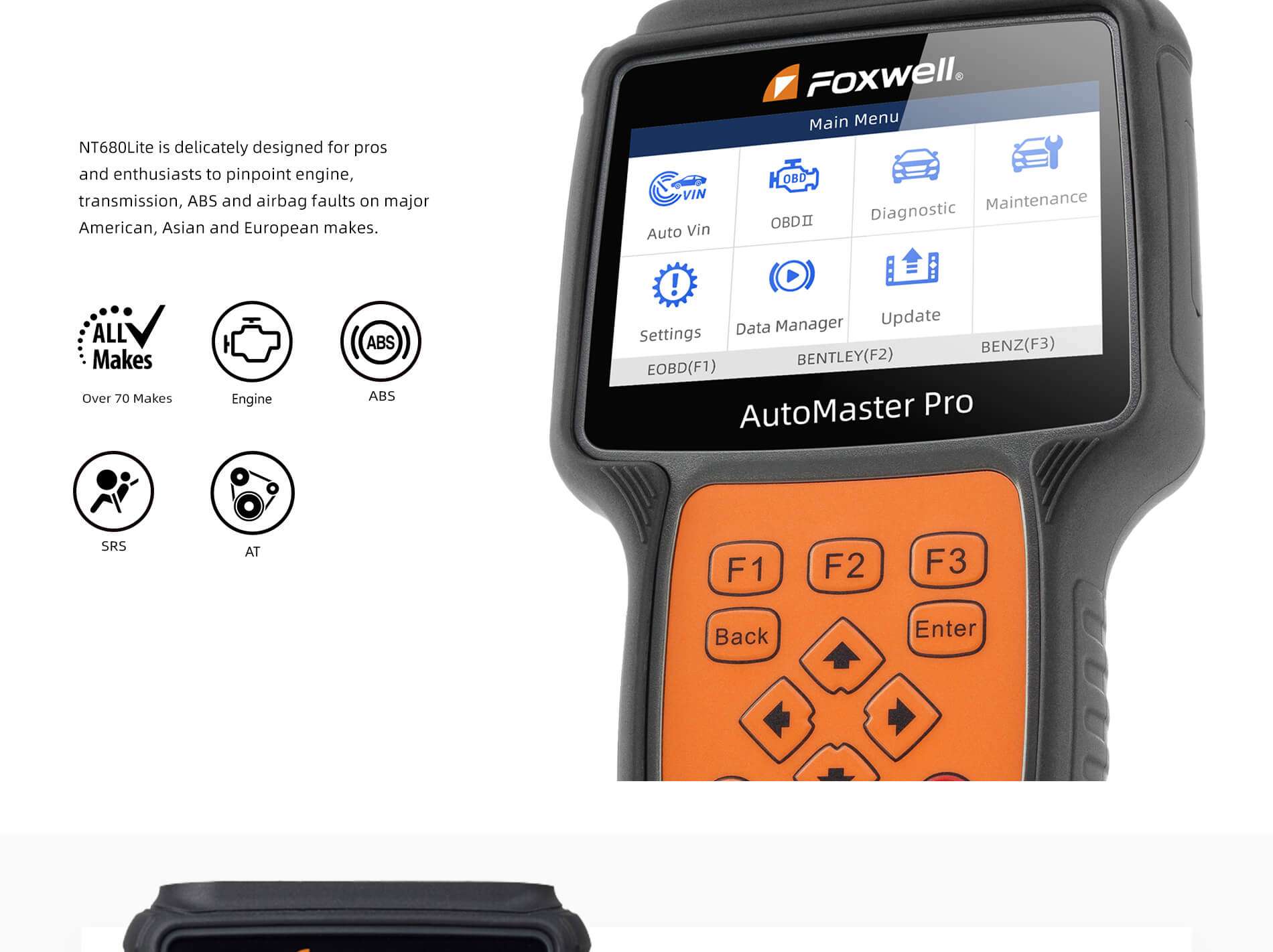 NT680Lite is delicately designed for pros and enthusiasts to pinpoint engine, transmission, ABS and airbag faults on major American, Asian and European makes. It offers technicians accurate,stable and easy diagnosis.