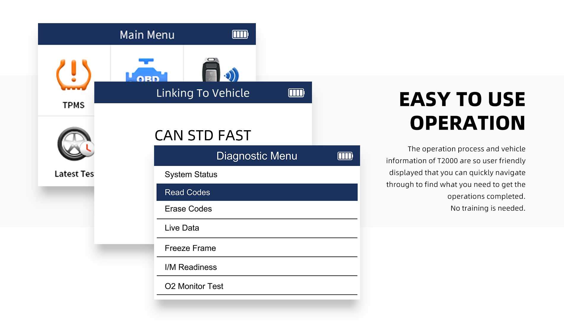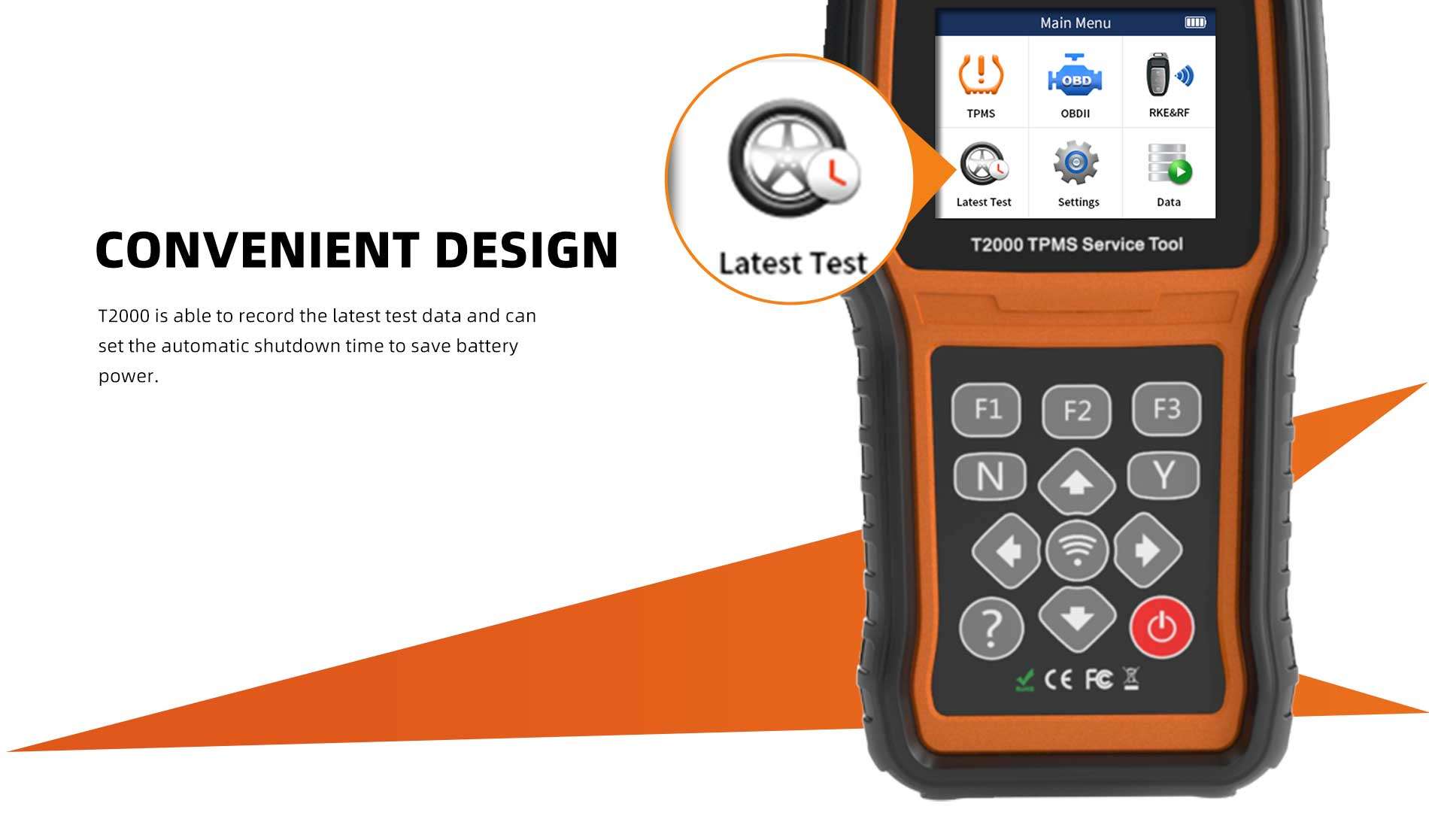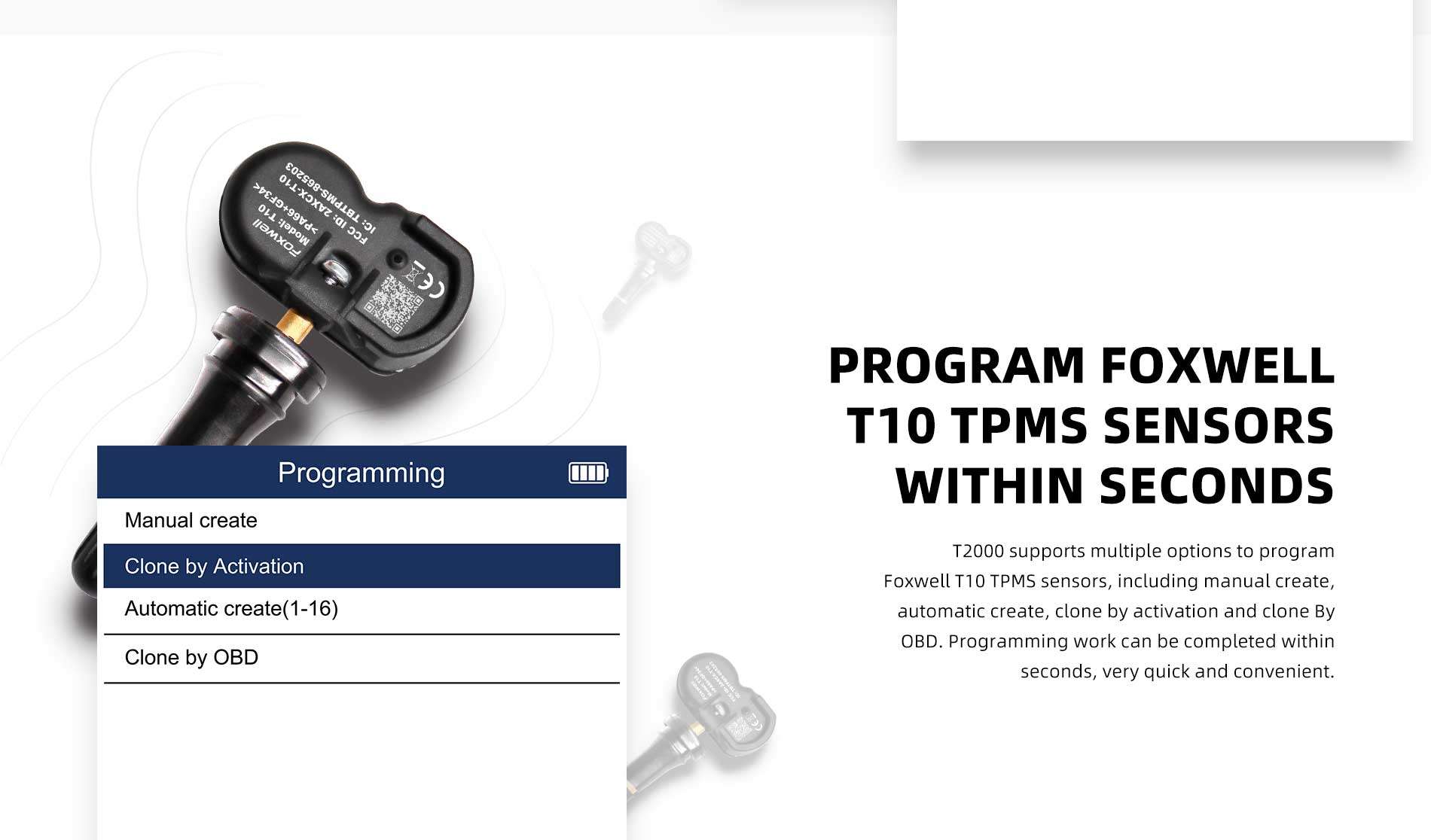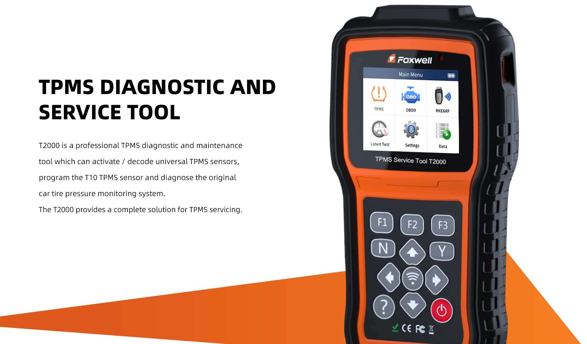 T2000 is a professional TPMS diagnostic and maintenance tool which can activate / decode universal TPMS sensors, program the T10 TPMS sensor and diagnose the original car tire pressure monitoring system. The T2000 provides a complete solution for TPMS servicing.