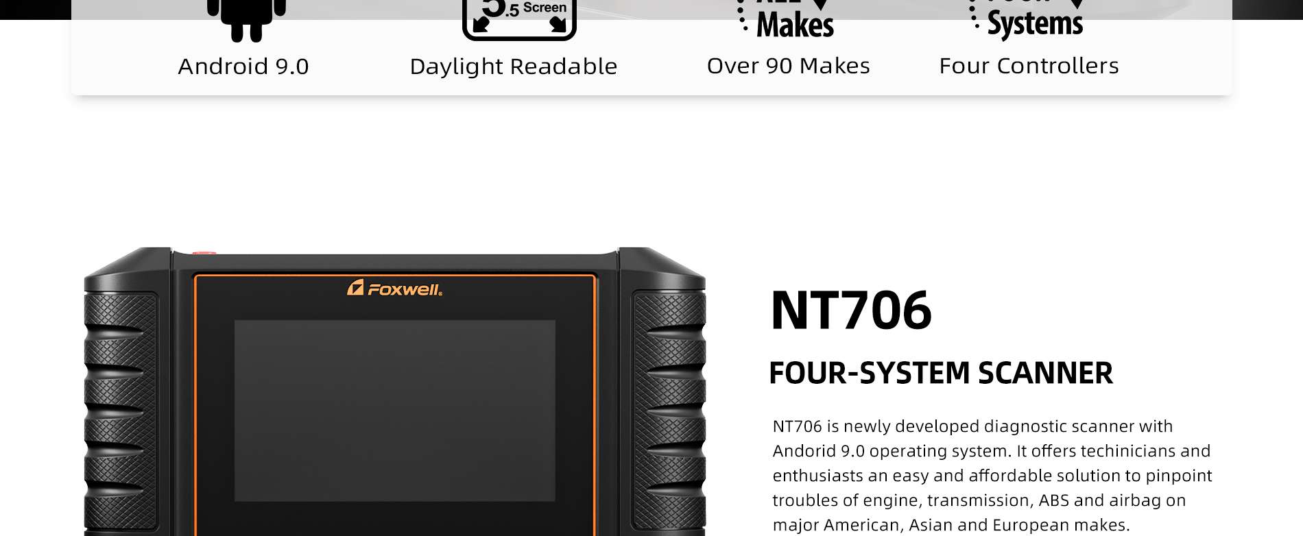 NT706 is newly developed diagnostic scanner with Andorid 9.0 operating system. It offers techinicians and enthusiasts an easy and affordable solution to pinpoint troubles of engine, transmission, ABS and airbag on major American, Asian and European makes.