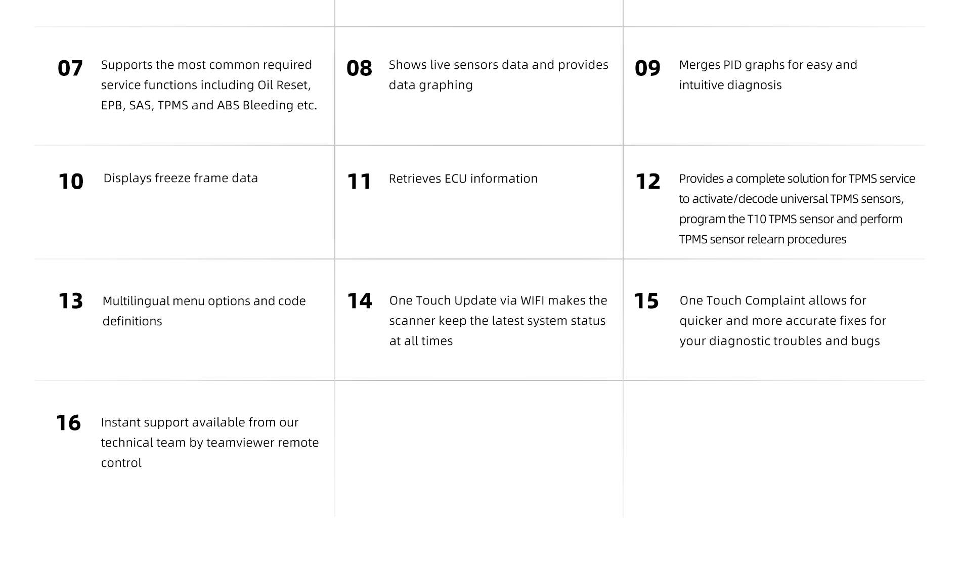 The latest TPMS device i50TS offers techinicians and enthusiasts an easy and affordable solution to pinpoint troubles of all electronic modules on major American, Asian and European makes and integrates with TPMS service function, including TPMS health check, T10 sensors activation & programming and TPMS relearn. Besides, it can supports the most common required service functions including Oil Reset, EPB, TPS, SAS, TPMS , DPF, Injector and ABS Bleeding etc.