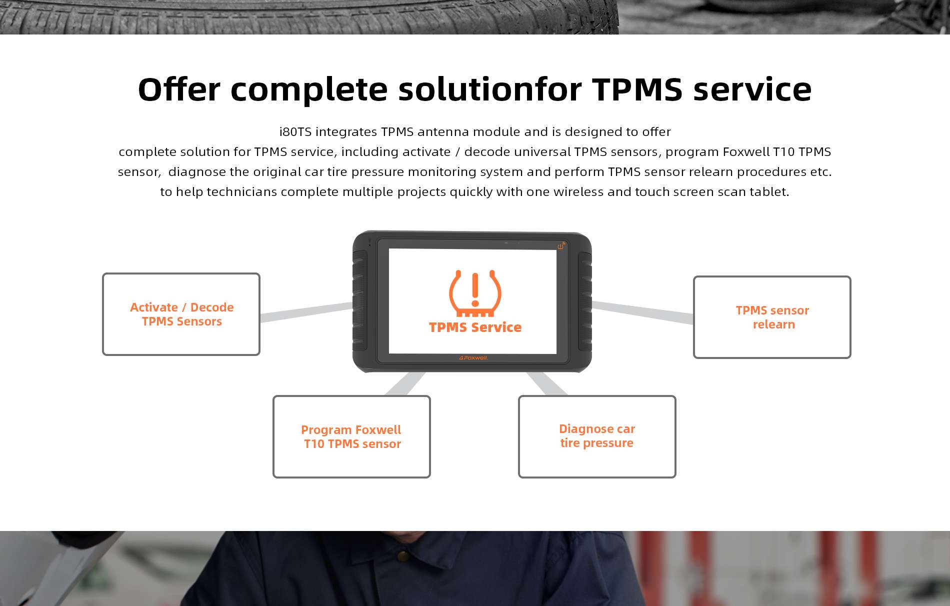 The newly released Foxwell i80TS, featuring multitasking Android 9.0 operating system, 10.1-inch LCD touchscreen, fast quad-core processor, extensive coverage and OE-level diagnosis, is built for maximum convenience and efficiency during diagnosis and service work. Besides, it integrates with TPMS service function, including TPMS health check, sensor activation & programming and TPMS relearn.