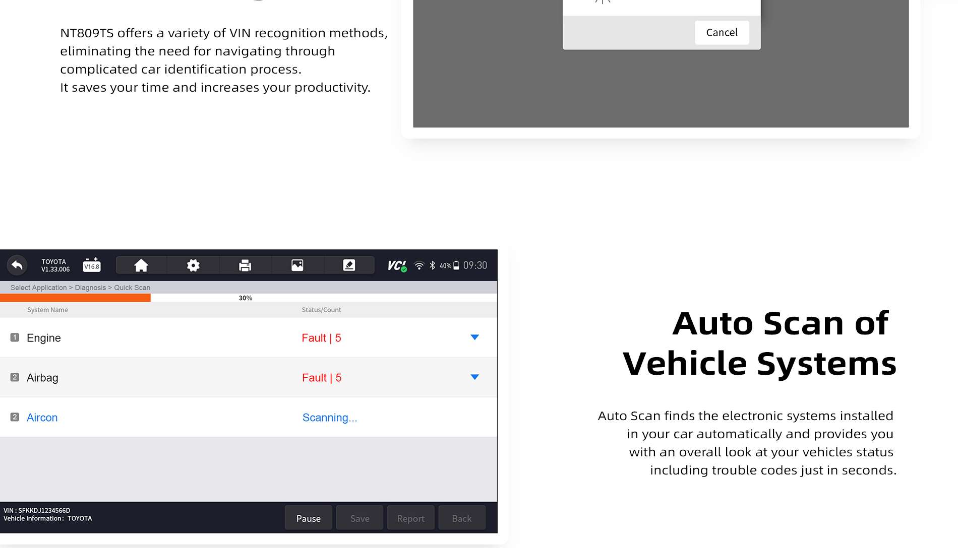 NT809TS is newly developed diagnostic scanner with Android 9.0 operating system. It not only inherits the same Foxwell advantages in car fault diagnostic tech but also initially integrates with TPMS service function, including TPMS health check, sensor activation & programming and TPMS relearn. It brings great convenience and efficiency for global workshops and technicians.